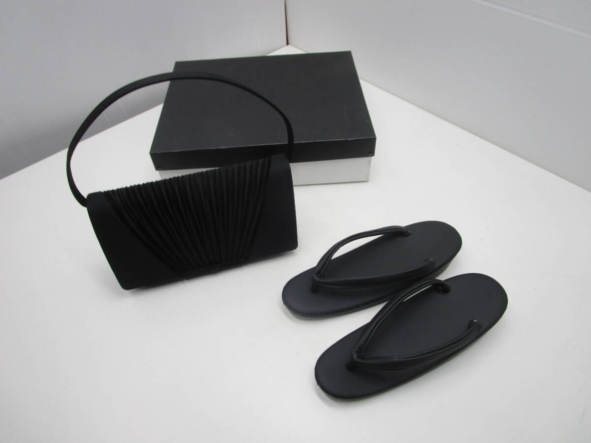 - O786★和装 バック草履セット ブラック系 草履サイズ約23.5㎝★中古品