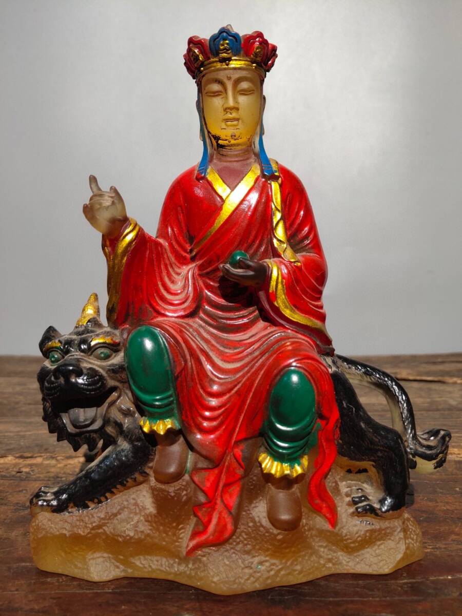 - ▽鴻▽ 琉璃製 細密彫 描金 彩繪 地藏王菩薩像 置物 古賞物 中国古玩 中国古美術