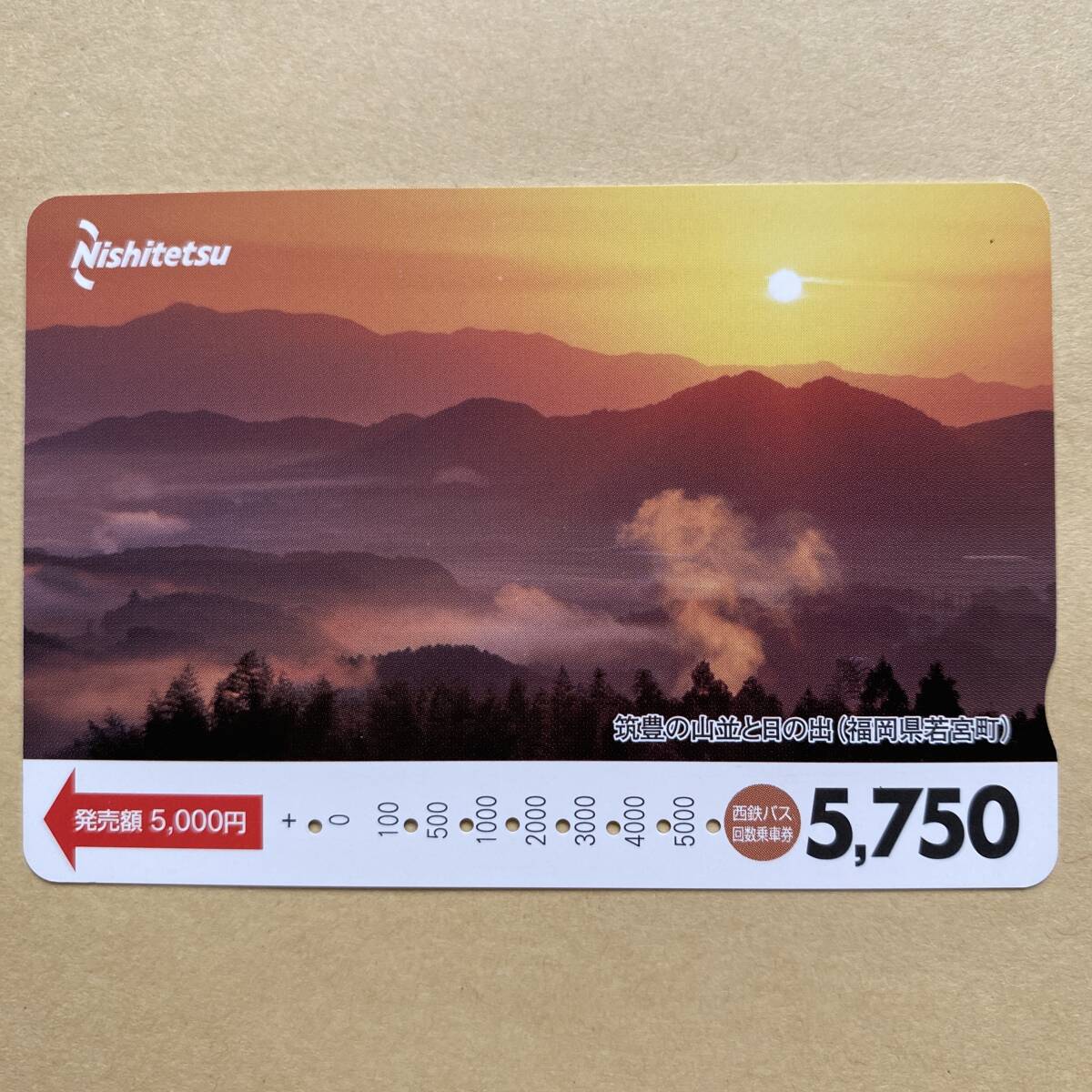 - 【使用済】 バスカード 西鉄バス 筑豊の山並と日の出(福岡県若宮町)