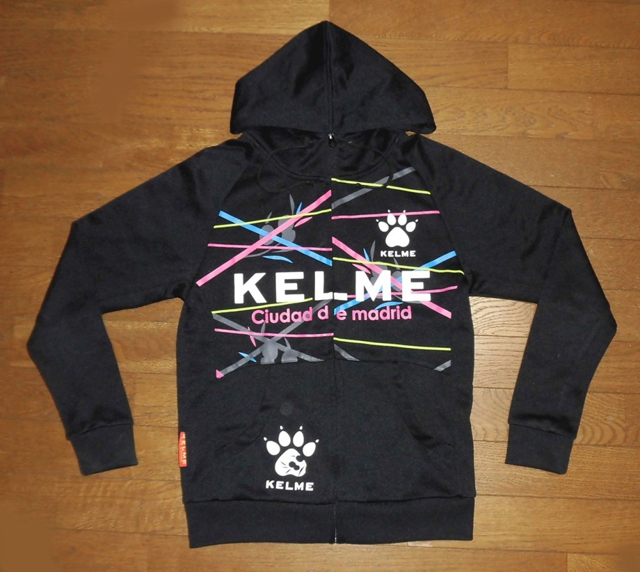 - KELME ケルメ フードジャケット ジャージ パーカー BLK S 使用少 美品/プラクティス ウォームアップ トレーニング サッカーフットサル
