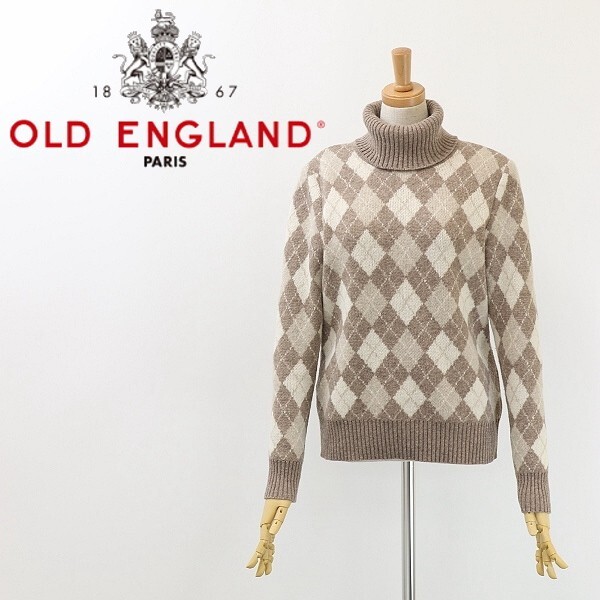 - ◆OLD ENGLAND オールド イングランド アーガイルチェック柄 タートルネック ウール ニット セーター 36
