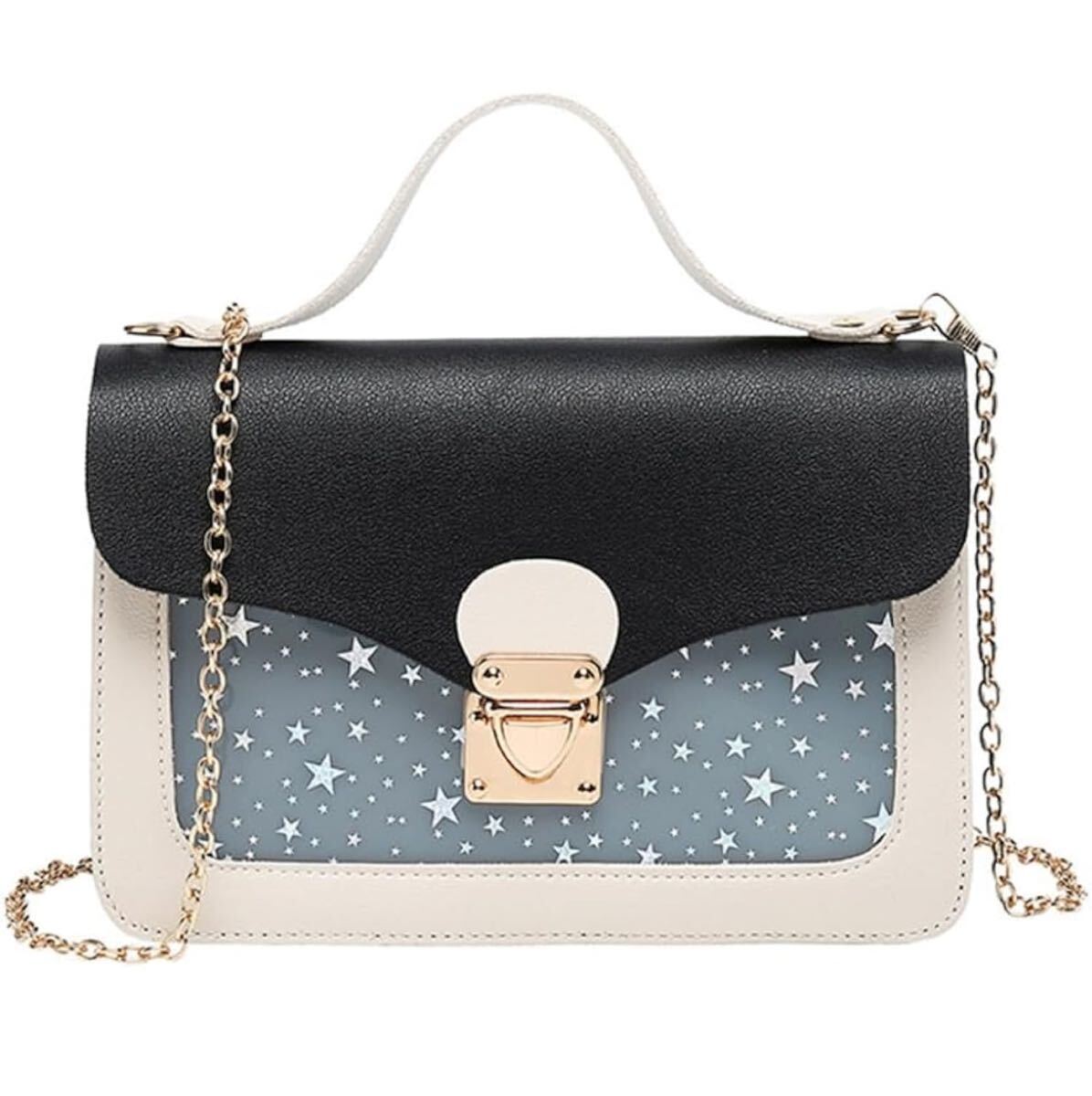 - レディース スモール メッセンジャーバッグ ミニ PU スクエアパック ショルダーバッグ スター スパンコール 色: ブラック