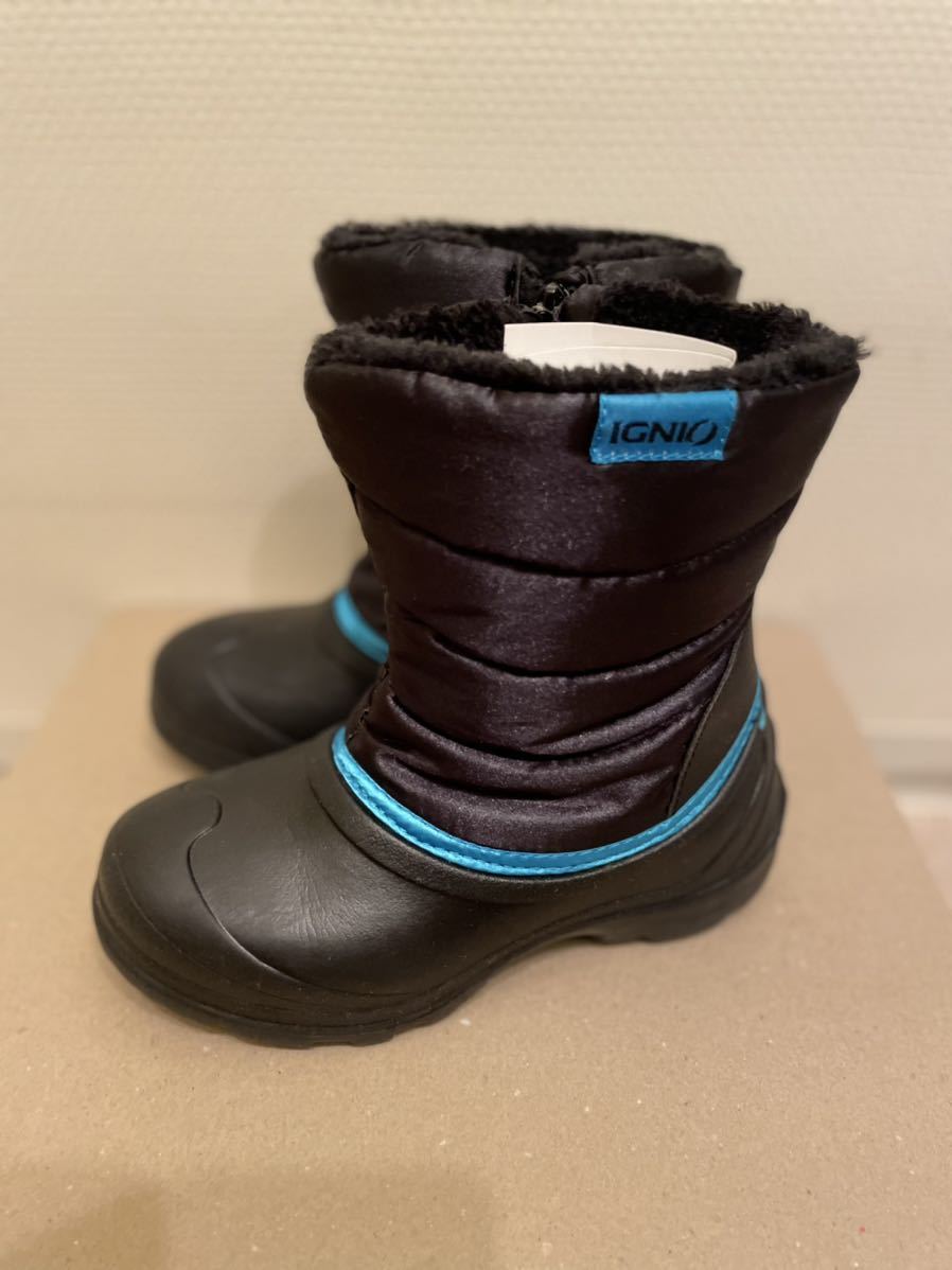 - イグニオ IGNIO ジュニア ロングブーツ ブラック×ブルー 子供用スノーブーツ 軽量 雪遊び