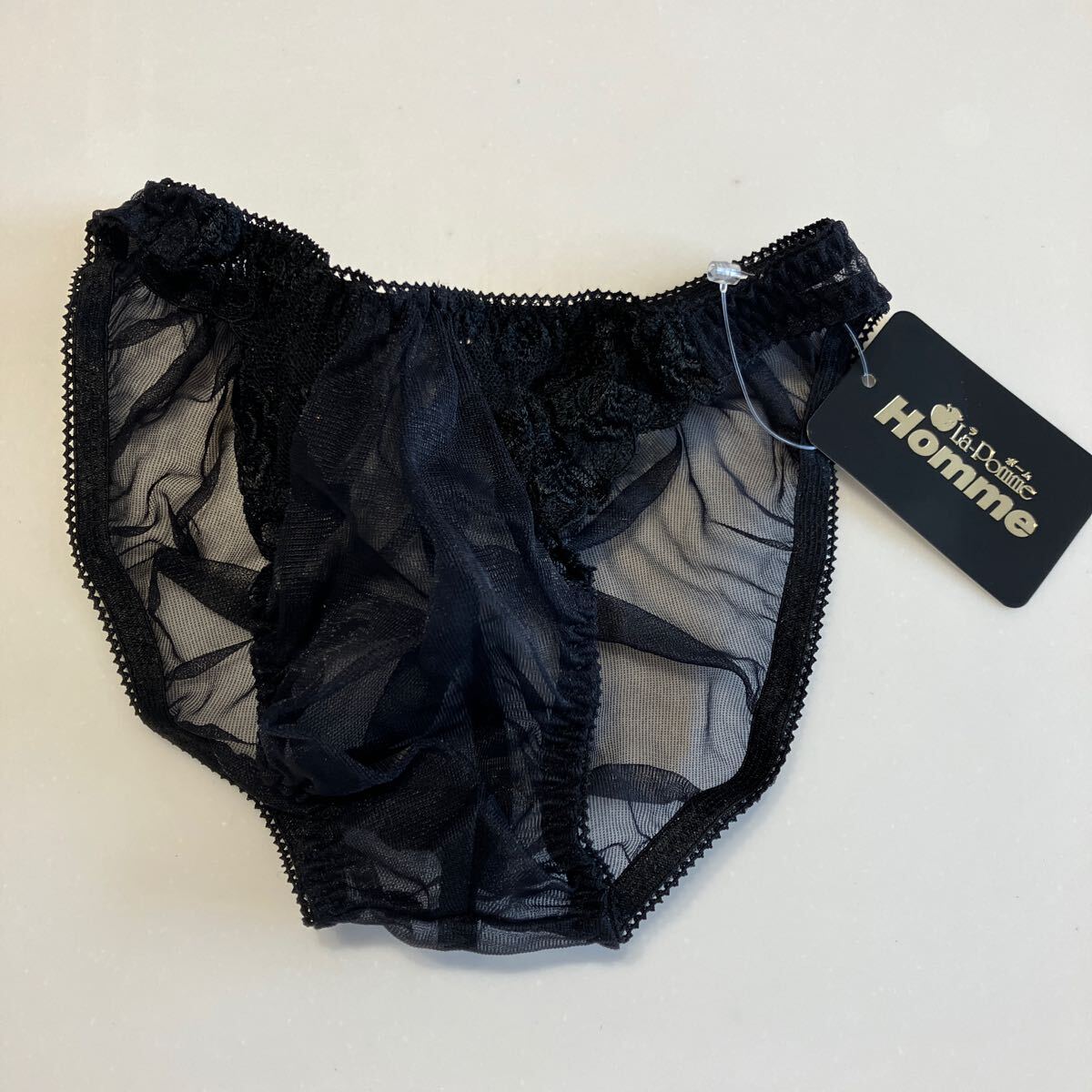 - ラポームオム メンズ La-pomme homme セクシー ラグジュアリー シースルー&ローズレースくいこみハーフバック ブラック M
