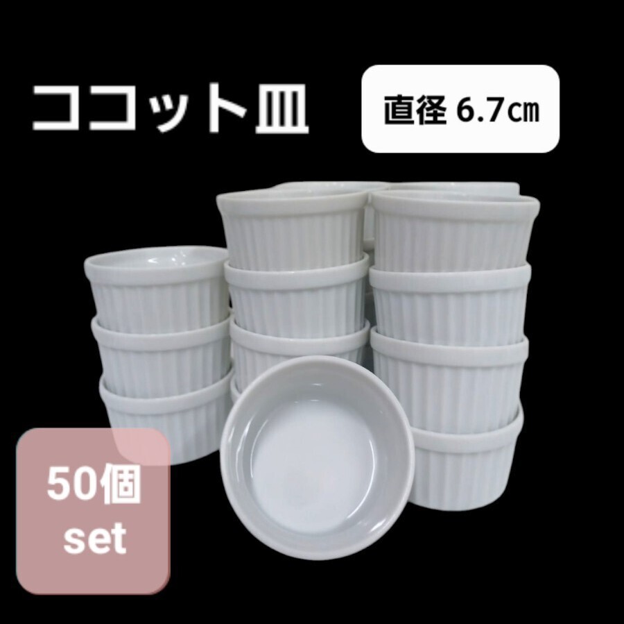 > 高125【50個】ココット 直径6.7cm スフレ COSUMO 耐熱皿 デザート 陶器 白 ホワイト 皿 小鉢 食器 店舗 業務用 小皿 250303