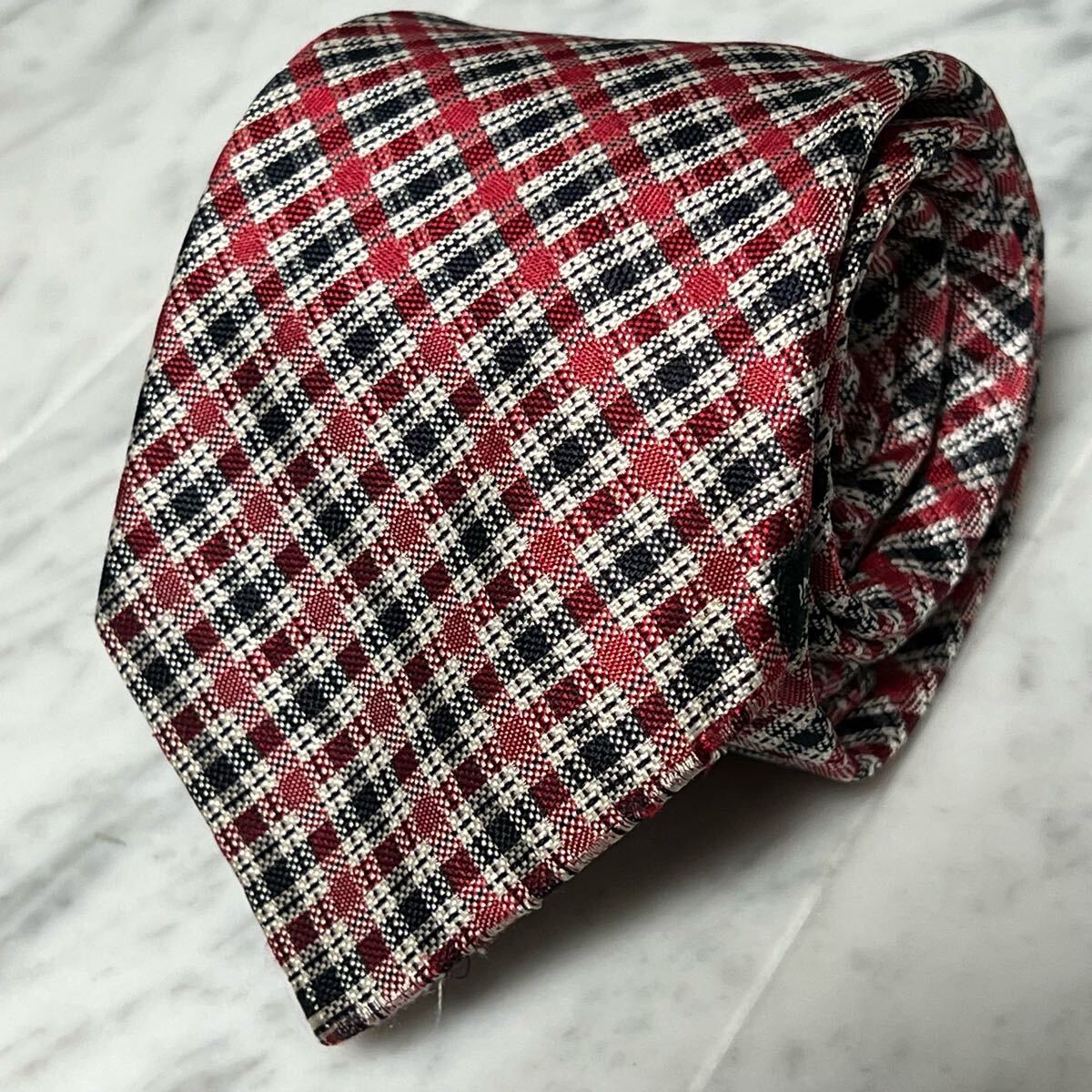 - 【美品】 999円~ INHALE EXHALE ネクタイ レッド系 チェック柄 (R6)