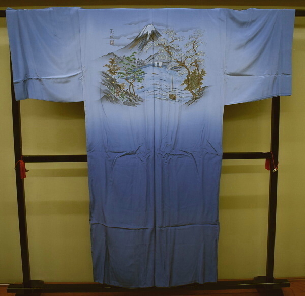 - A26-2【凛々】即決 新古品 正絹 男物 長襦袢 灰紺ぼかし 松 仮絵羽状態