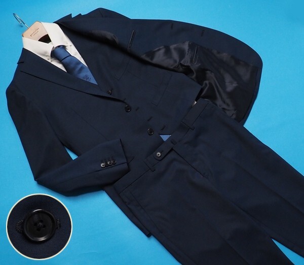 > 新品訳4.3万円 大手スーツ専門店展開 ビエラノフィニッシュ ウォッシャブル ソリッド無地 スリーピース スーツA5青(D)0630233