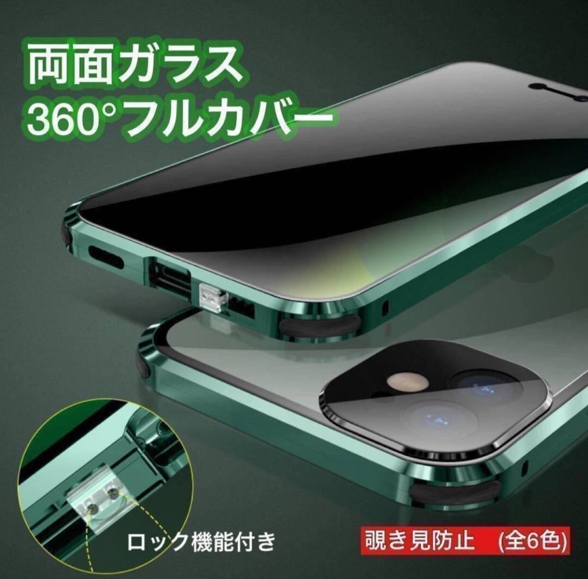 > LHH396覗き見防止+両面ガラス+レンズカバー一体型 iPhone12/12Pro/12Promax/12mini 対応アルミ合金 ロック機能付夜光エアバック フィルム不
