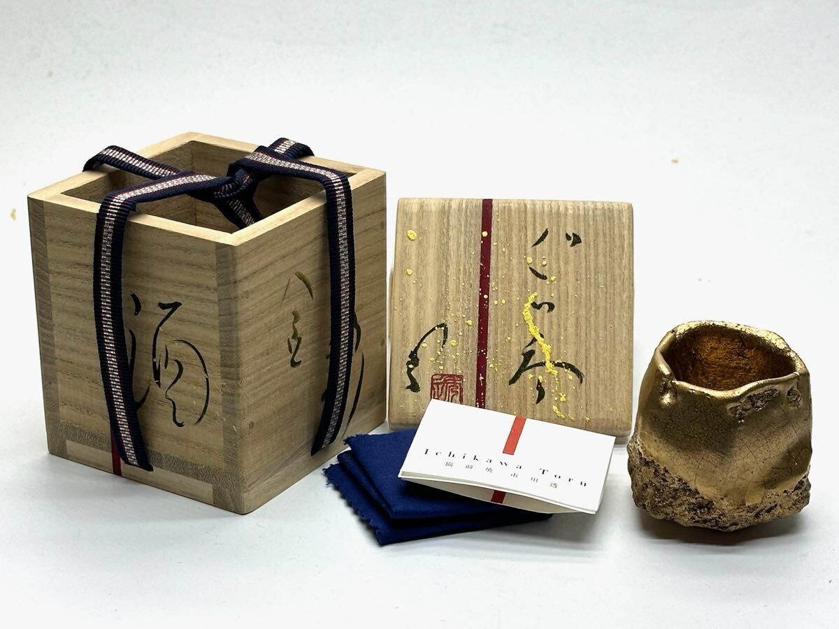 - 市川透 金彩 ぐい呑 共箱 共布 栞 酒器 備前焼 ②