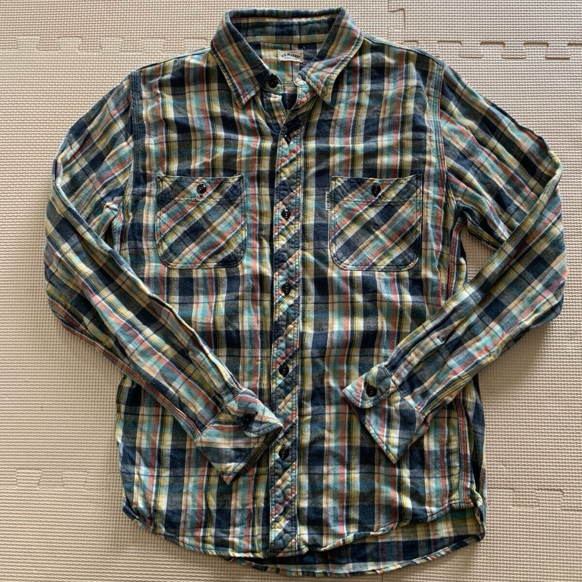 - 【Hollywood Ranch Market】ハリウッドランチマーケット M ネルチェックワークL/Sシャツ ネルシャツ ブルーチェック 日本製 ST990