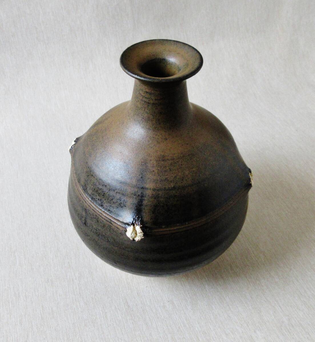 - 鉄釉四ツ目鶴首花瓶【栗木伎茶夫】(師)藤井達吉 高さ19.5cm 重さ1.15kg 箱無し