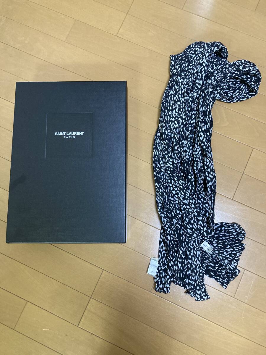 - 未使用サンローランパリ正規品ベイビーキャットストール黒箱付きシルク!レオパード柄ヒョウ柄マフラー。エディ期エディスリマン131415