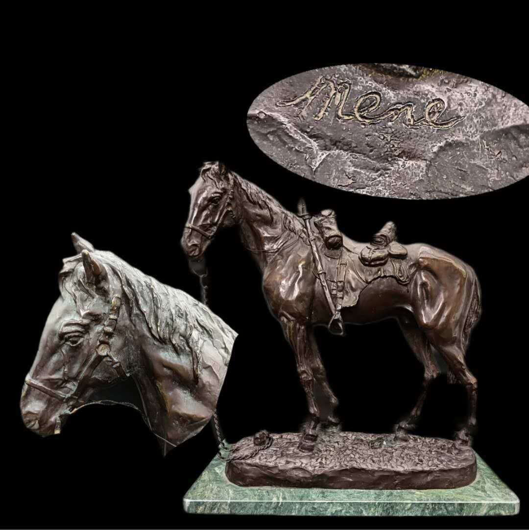 - 【A0356】戦馬 フランス MENE作 特大ブロンズ オブジェ 銅制 西洋彫刻 置物 古玩 骨董品 アンティーク 高約43cm 重約15.05kg