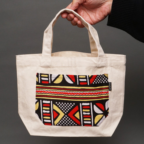 - キャンバス アフリカンワックス ポケット トートバッグ Sサイズ No.2 パーニュ 布バッグ アフリカ雑貨 アフリカ布