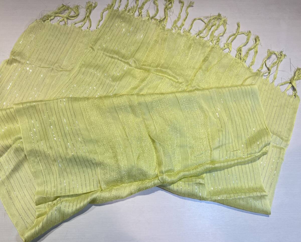 - B)ストール 山吹色 黄緑 春夏用 ラメ フリンジ B0184i
