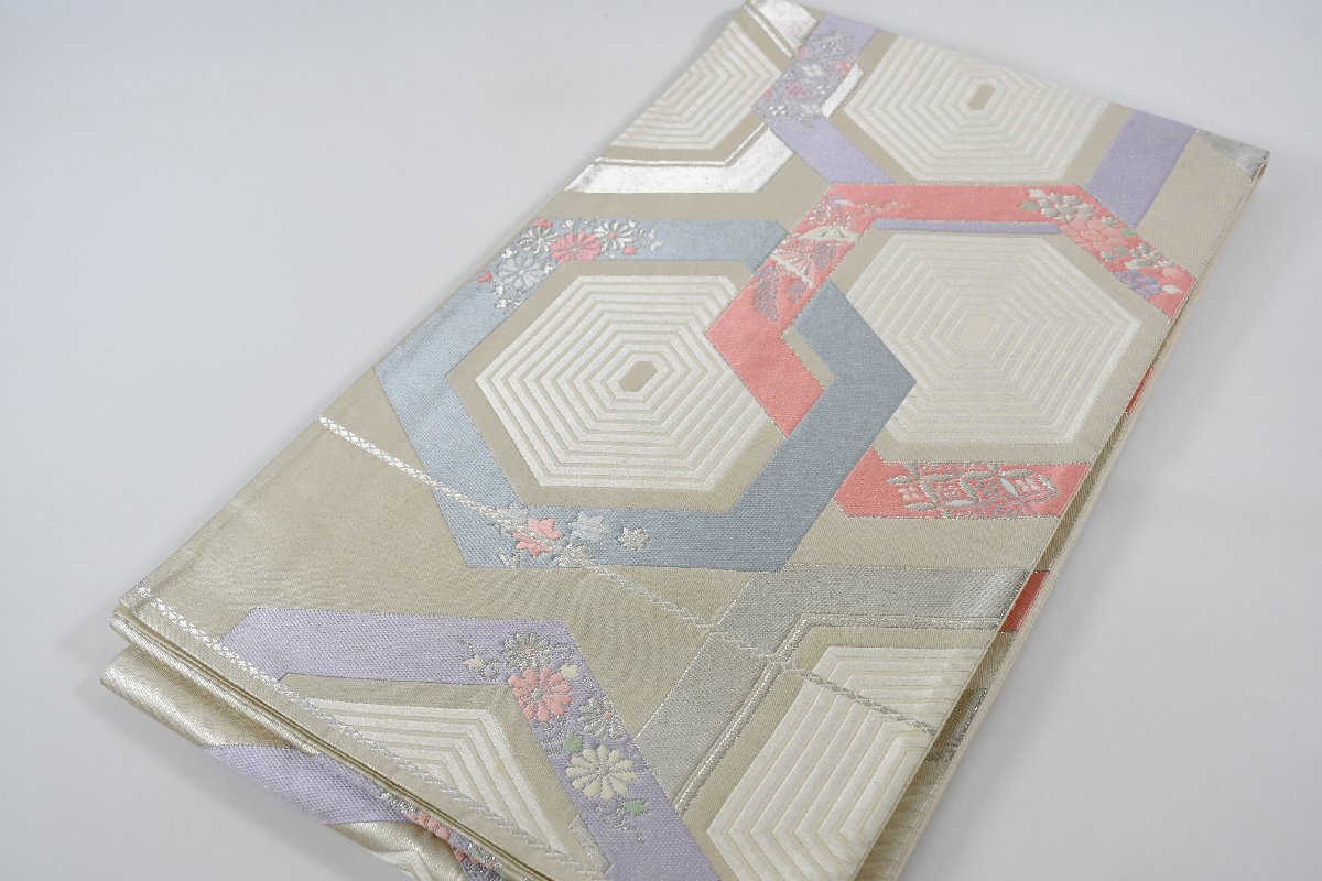 - 袋帯 六通柄 亀甲 花 帯丈429cm ★着物屋 ne-14362 桜庭呉服店
