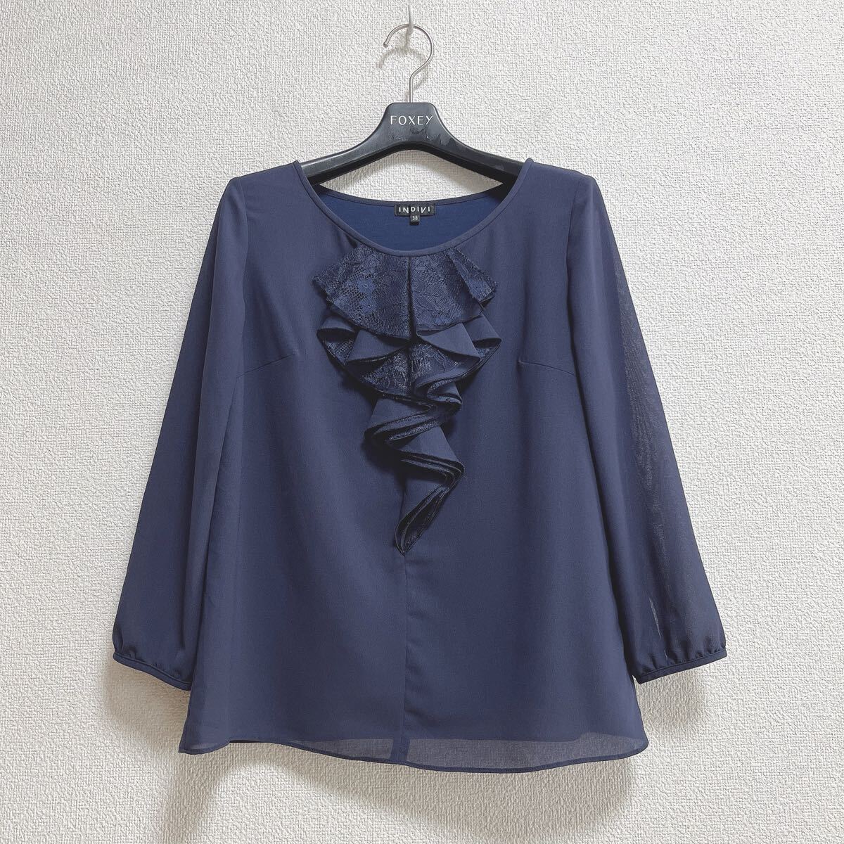 > INDIVI インディヴィ◆フリルレースブラウス 38 紺ネイビー◆トップス リフレクト アンタイトル