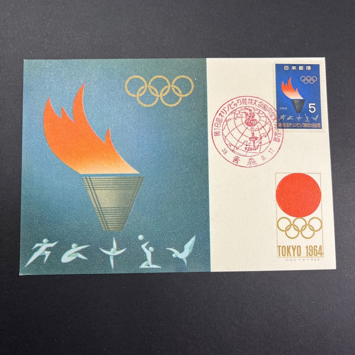 - 東京オリンピック1964年5円切手マキシマムカード 第18回オリンピック競技大会国内聖火リレー記念印! 昭和39年 青森印OLYMPIC『上中1』