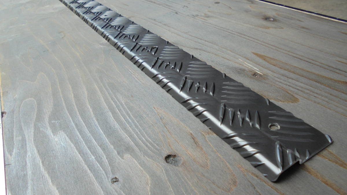 - ハイエースバン 200系 DXリアスカッフプレート アルミ製縞板 アルマイトブラックカラー ナロー用