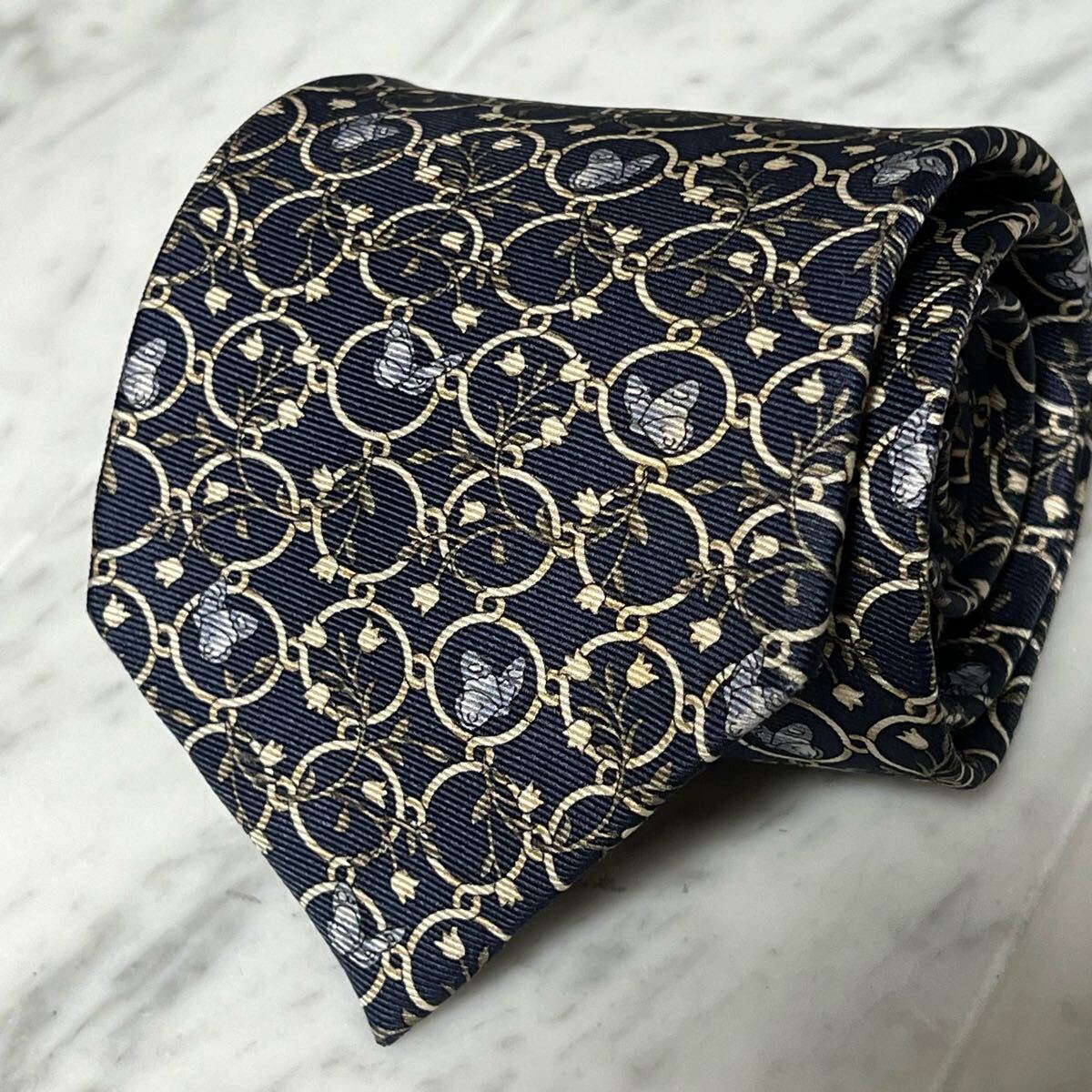 - 【美品】 999円~ Nina Ricci ネクタイ ネイビー ボタニカル柄 蝶々 (B10)