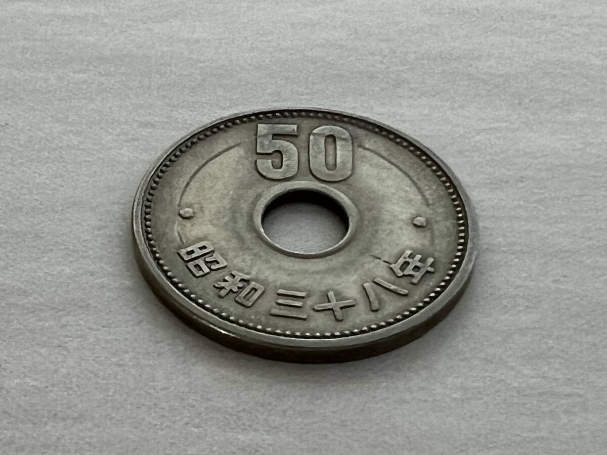 - 50円 ニッケル貨 昭和38年 1枚 ※円形線有り 有孔 昭和三十八年 五十円 50円硬貨
