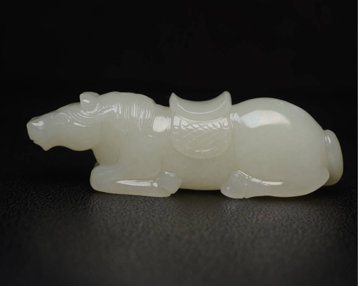 - ▽鴻▽ 和田玉製 細密彫 玉馬 置物 古賞物 中国古玩 中国古美術