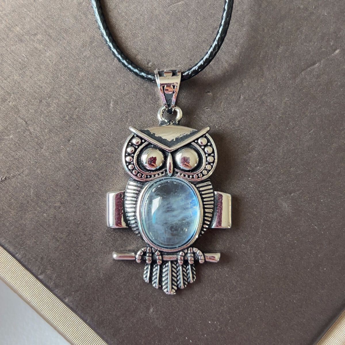 - ◇アクアマリン◇ネックレス◇フクロウペンダント◇天然石◇パワーストーン◇巾着袋付◇プレゼントにも035P3811