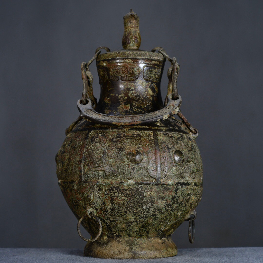 - ▽鴻▽ 漢 青銅製 立鳥チェーン瓶 置物 古賞物 中国古玩 中国古美術