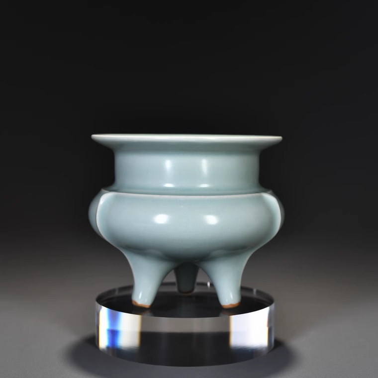 > 宋 龍泉窯 粉青釉三足鬲式炉 袴腰香炉 唐物 箱付き 陶磁器 中国美術 古美術 置物 高さ11cm 直径13cm RB57