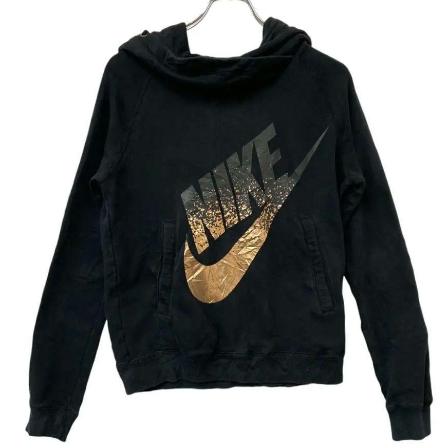 - ナイキ レディース パーカー 黒 Sサイズ メタリックプリント 【423】
