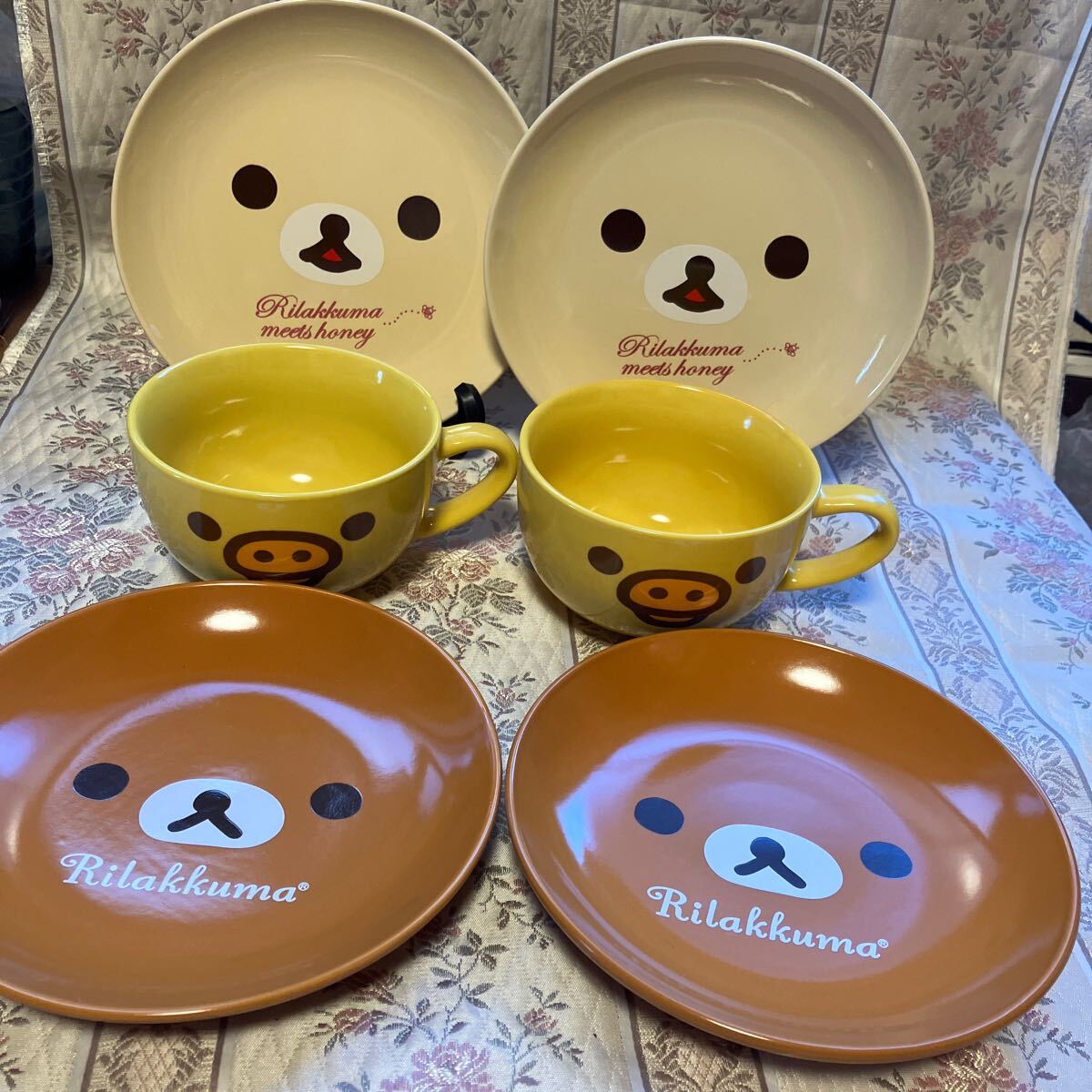 - 美品★キイロイトリ スープマグカップ 2客&プレート 4枚 ローソン 陶器製