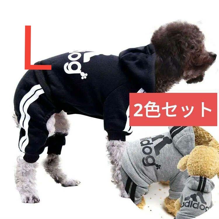 - 新品 犬服 2色セット L アディドッグ ロンパースタイプバーカーベット服 ドッグウェア