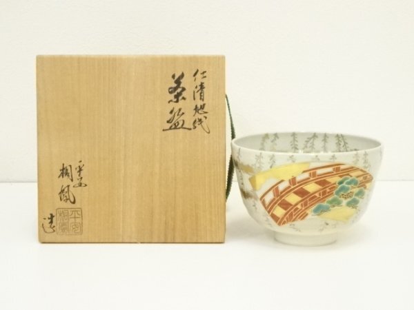 - ys7309965; 京焼 手塚桐鳳造 仁清地紙太鼓橋茶碗(共箱)【道】