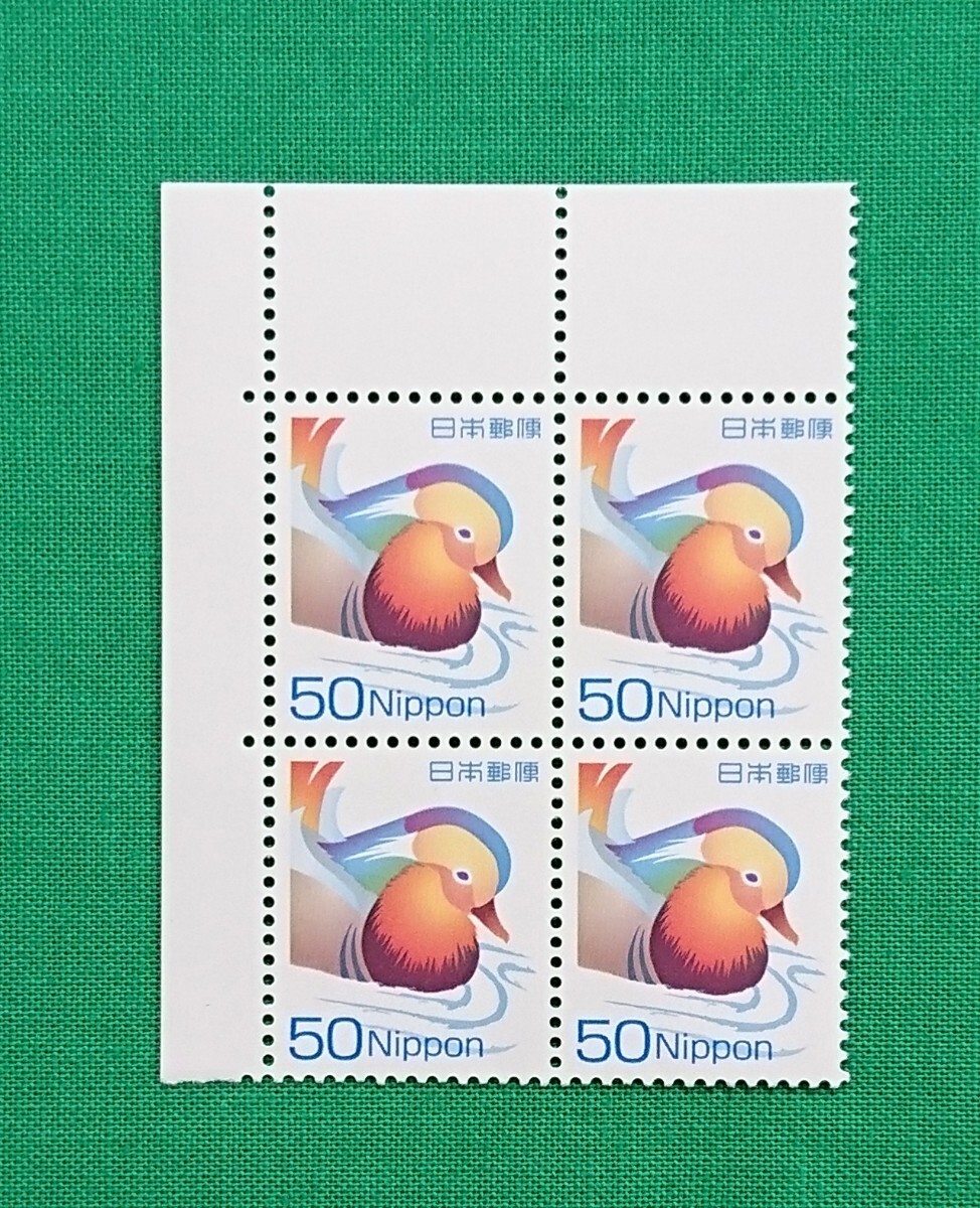 - オシドリ/普通目打/新書体/4枚ブロック/普通切手/郵便事業株式会社発足/未使用/NH/極上美品/裏糊良好/シワ無/シミ無/平成切手/No.328