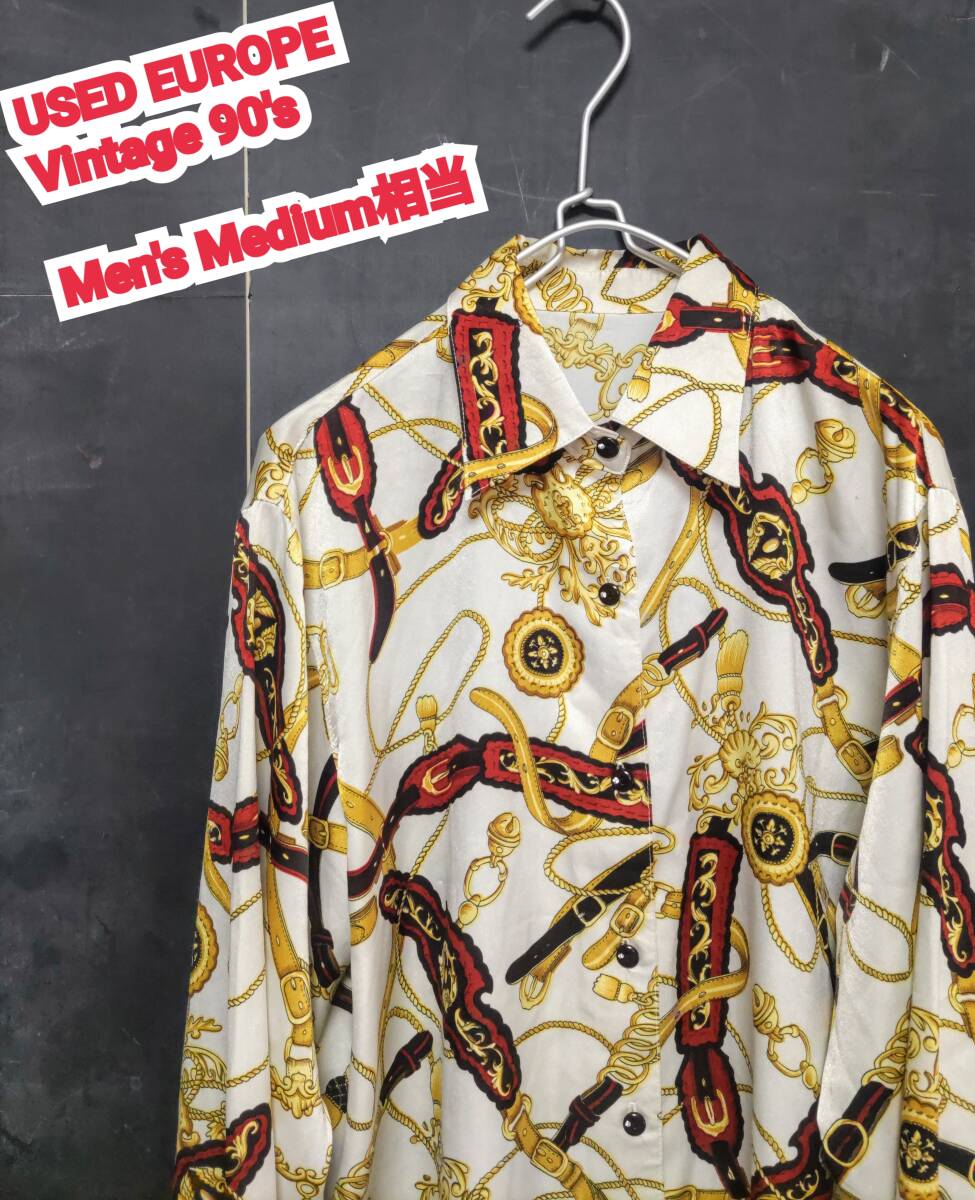 > ★送料無料★ ヨーロッパ古着 サテンシャツ メンズ デザインシャツ ヨーロピアン Men's Medium 相当
