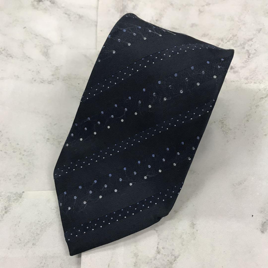 - エポカウォモ ネクタイ 紺色 ドット ストライプ シルク【n611】