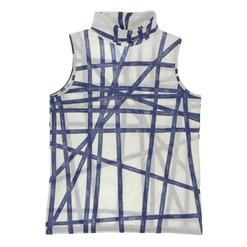 - HERMES エルメス by Martin Margiela マルジェラ期 リボン柄 ノースリーブカットソー トップス レディース コットン ホワイト ブルー M