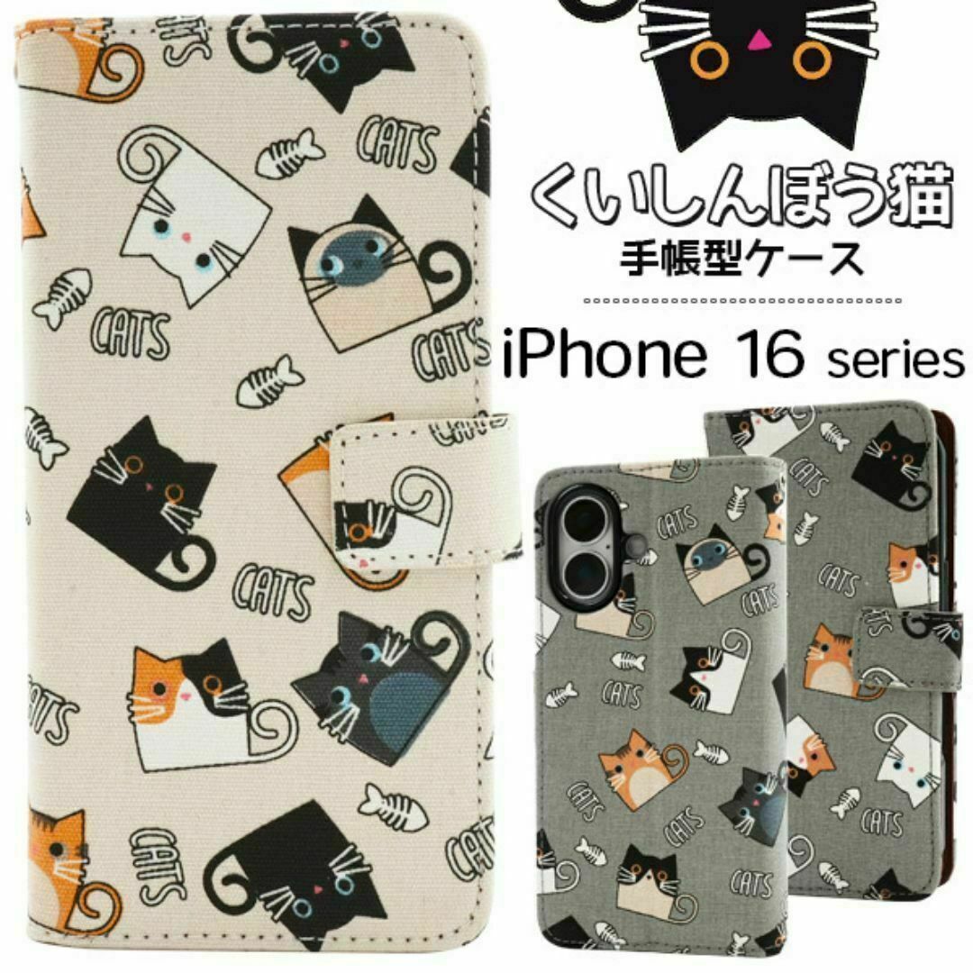 - iPhone 16 くいしんぼう猫手帳型ケース