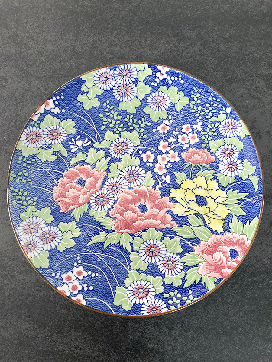 - 送料無料◆精峰窯 食器 大皿/飾り皿 約36.5cm◆牡丹 菊 梅 青海波/和皿 和食器 和風 華やか 青 花柄 赤 黄色 有田焼? 和柄