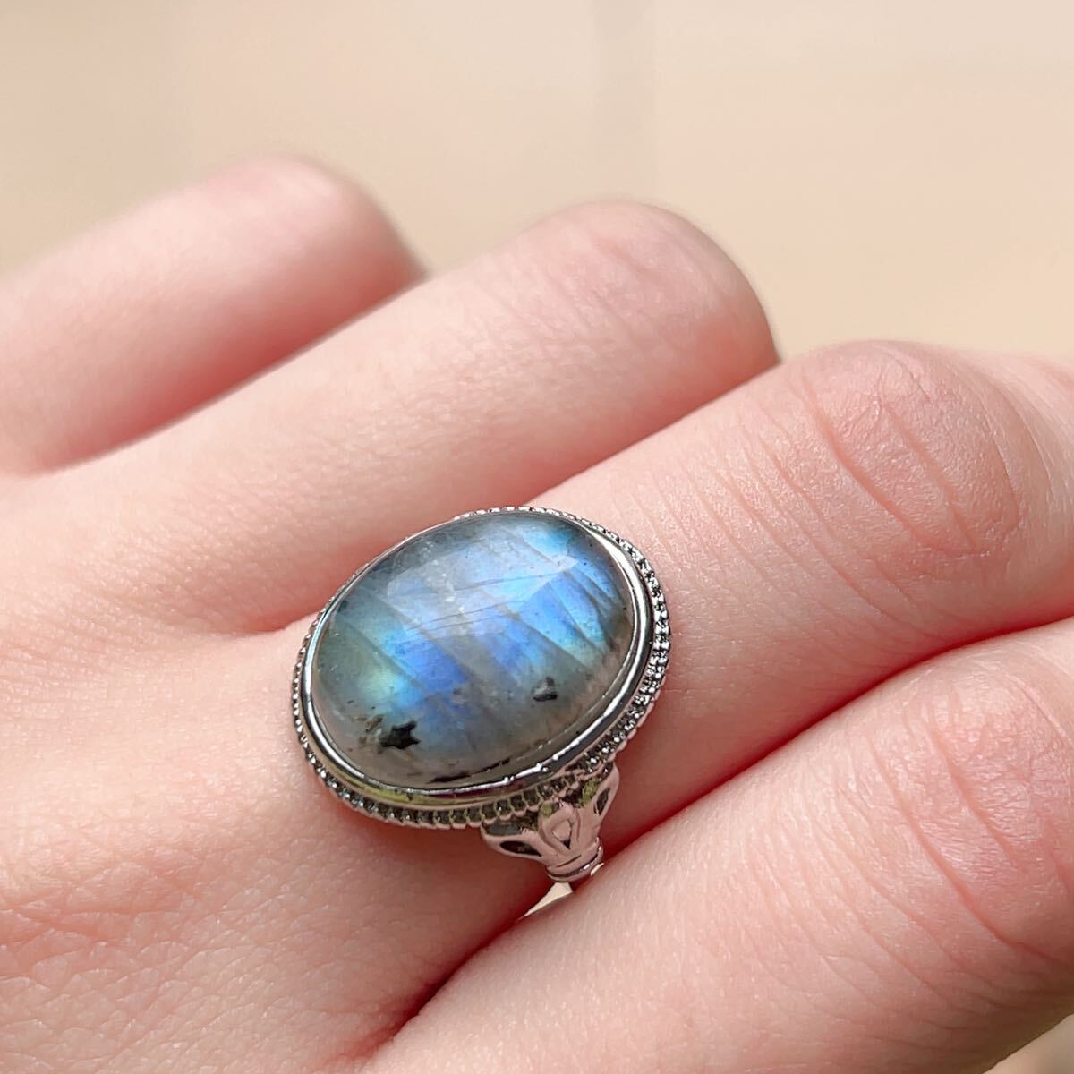 > ◇ムーンストーン◇指輪◇リング◇フリーサイズ◇天然石◇パワーストーン◇巾着袋付◇プレゼントに036R3124