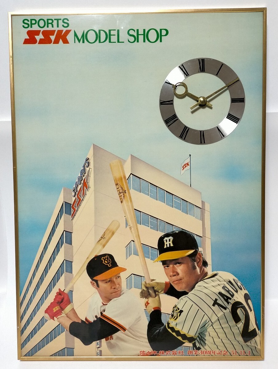 - ★ 読売ジャイアンツ 柴田勲 / 阪神タイガース 田淵 幸一 / パネル時計 SSK 昭和レトロ 非売品 当時物 縦500mm×ヨコ360mm ☆