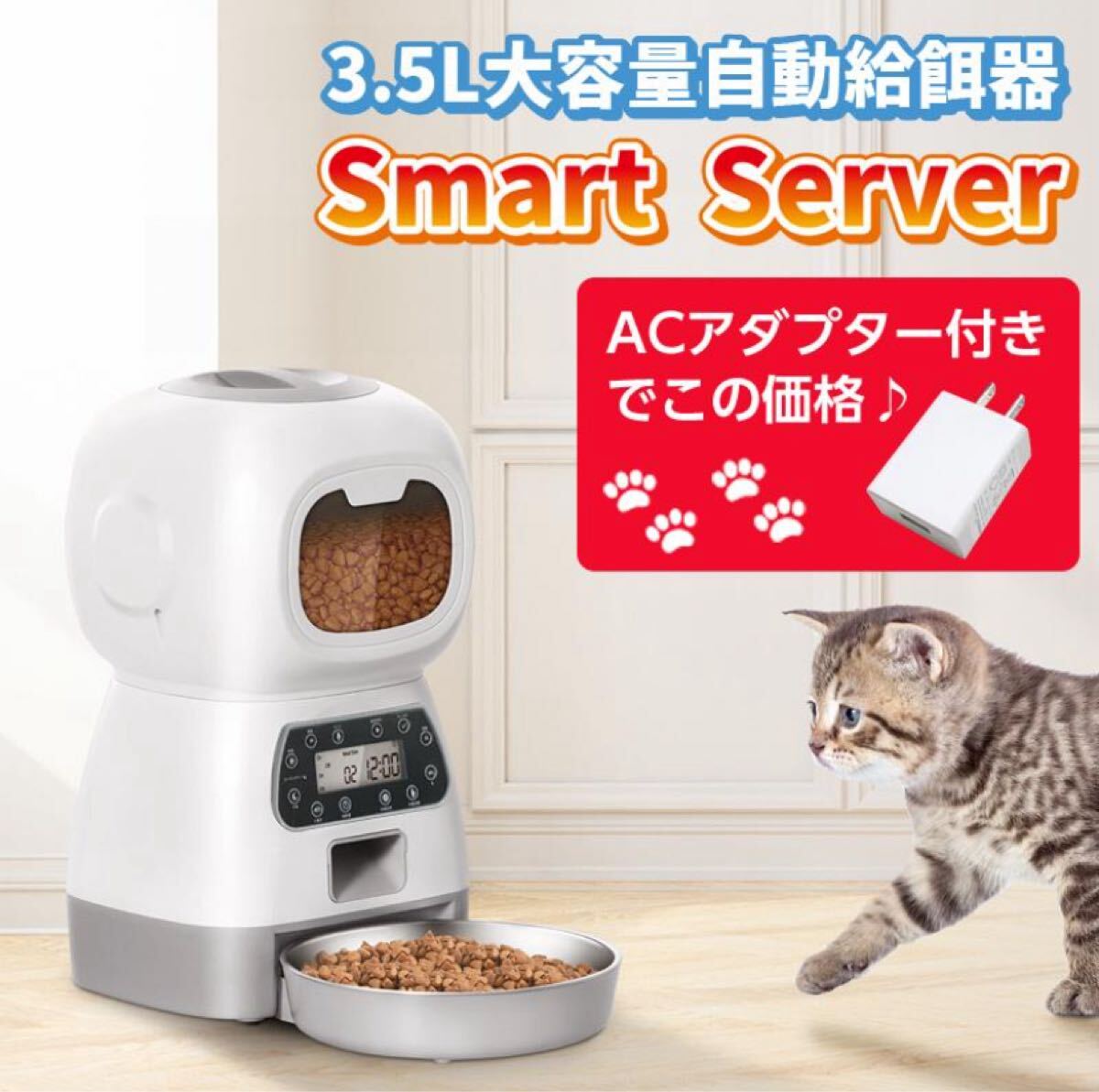 - 自動給餌器 給餌器 猫 AC付き イヌ ネコ 犬 猫 餌やり 自動餌やり機 ペットフィーダー ペット用自動給餌 3.5L タイマー設定 コンセント