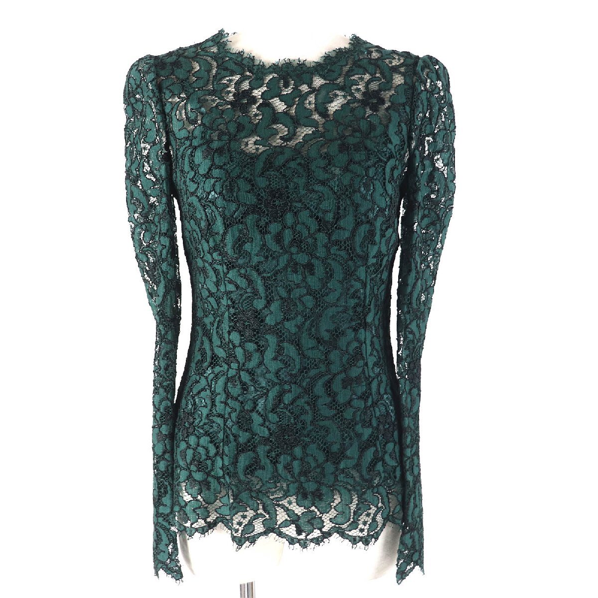 > 未使用品△DOLCE&GABBANA ドルチェ&ガッバーナ 黒タグ キャミソール付き 総レース 長袖 カットソー グリーン 36 正規品 定価210000円