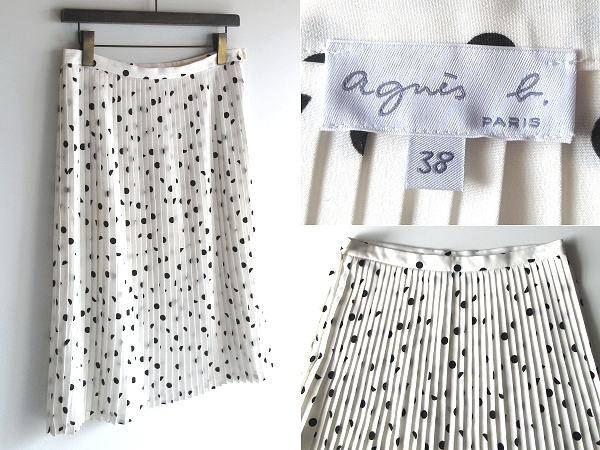 - 美品 agnes b. アニエスベー 2018SS ドット プリーツスカート 38 白黒 ホワイト ブラック 日本製 国内正規品
