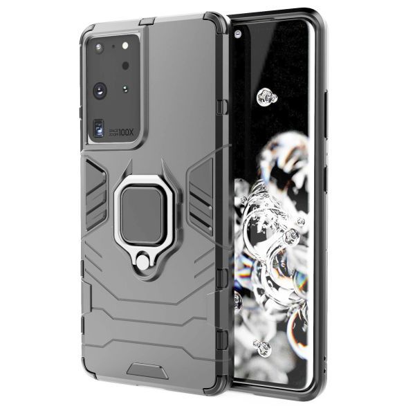 - T在庫処分 黒 Galaxy S21 Ultra 指リング付き ケース SC-52B 衝撃吸収 カバー ギャラクシー 保護 丈夫な耐衝撃 スタンド機能 サムセン