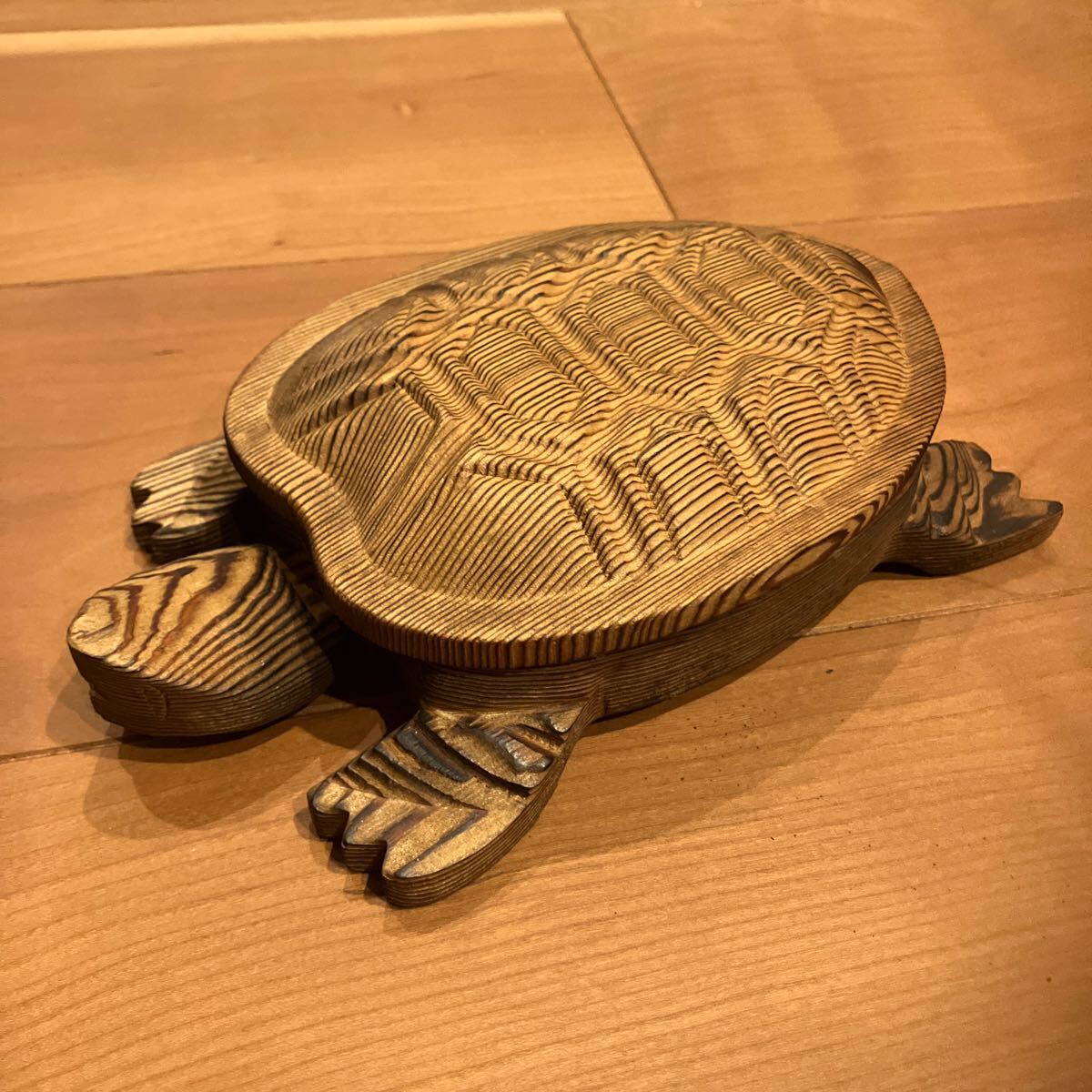 - 亀 カメ アンティーク コレクター 年代物 蚤の市 骨董 古い 小物入れ 雑貨 貴重 ヒノキ 檜 木製 工芸品 インテリア 置物