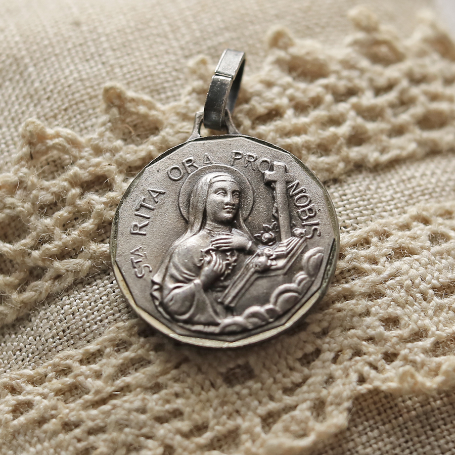 - フランス アンティーク【聖リタ】イタリア メダイ サンタ リタ/ルルド メダル ロザリオ キリスト マリア 教会/G