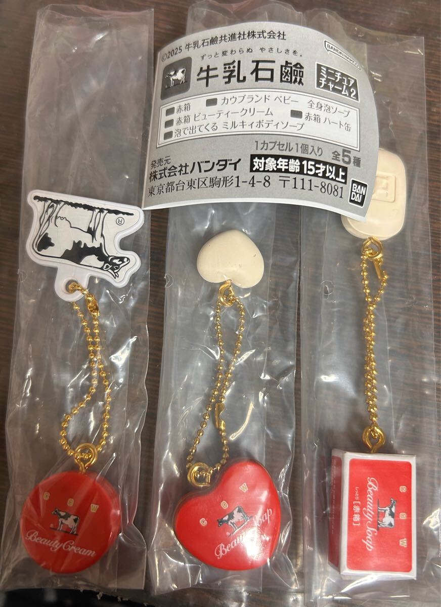 - 牛乳石鹸★ミニチュア チャーム2★3こセット 赤箱 ハート缶 ビューティークリーム