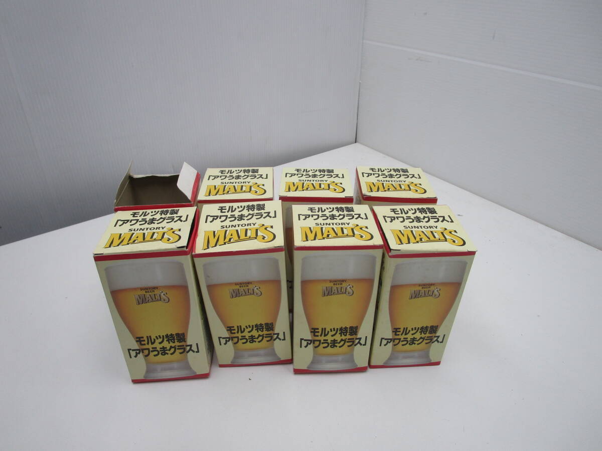 > O828★モルツ特製 アワうまグラス 8個セット サントリー 14cm ガラス タンブラー コップ ノベルティ 非売品★未使用品